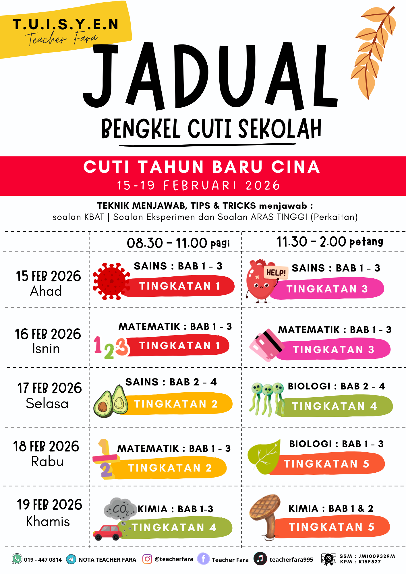 PENDAFTARAN TERBUKA UNTUK PELAJAR SEKOLAH SAHAJA.